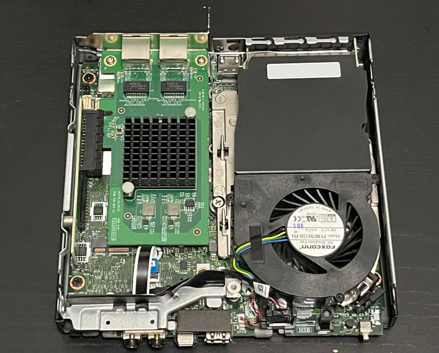 The new dual-port Ethernet adapter fitted (nothing to hold it in place, but it's a tight fit)